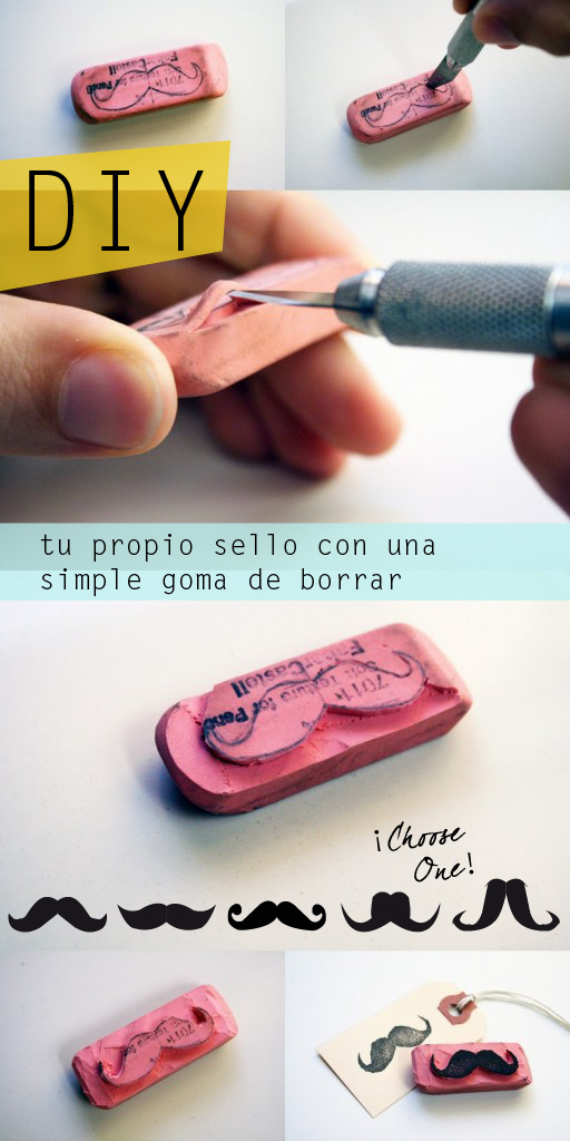 No os encantaría tener vuestro sello personalizado? Pues os traemos una forma muy fácil de crear el vuestro propio. Sólo hace falta una goma y una cuchilla, un diseño y ya está! ¿Os animáis?