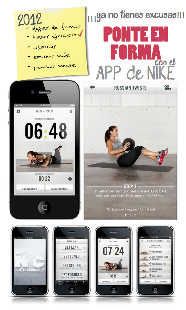 Pues ya no hay excusas que valgan... con esta aplicación de Nike para Iphone, Itouch, y Ipad, puedes tener tu entrenador personal en casa. ¿Lo mejor? Es de esas aplicaciones gratis, que a mi tanto me encantan. ;)