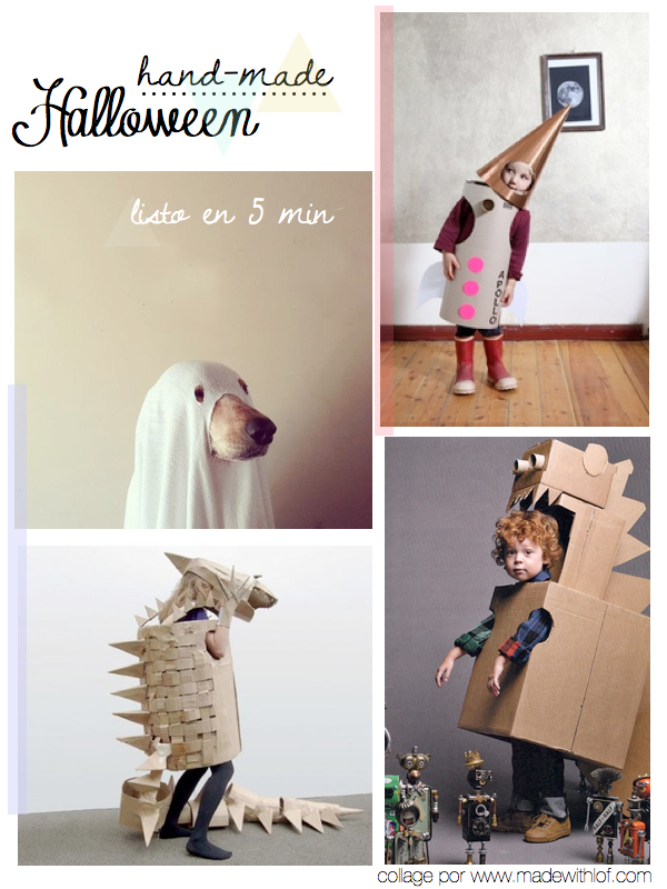 Para que eso no pase, os enseñamos hoy algunas propuestas para quitarse el sombrero y con cosas que andan por casa. No dan mucho miedo, pero si alguno de estos niños (o perro) pegan a la puerta y gritan "Truco o trato" yo le daría el bote entero de caramelos.