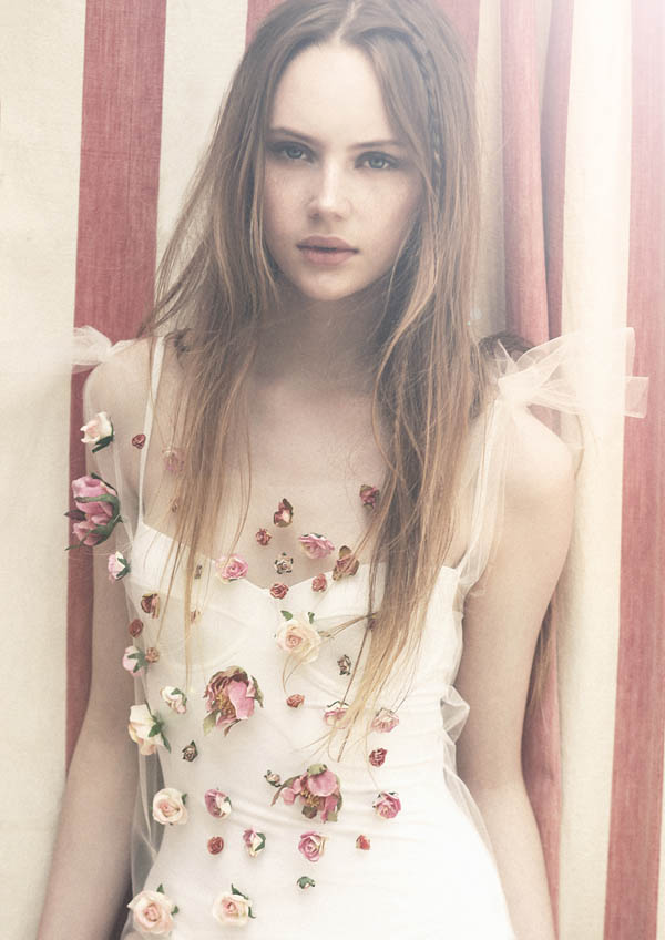 Brynja Jónbjarnardóttir, icelandic model with a very difficult last name, is the new image of the photographies of fashion photographer Toby Knott. The headpieces, the flowing skirts, and the soft colors makes this look perfectly romantic. Styled by Martha Ward.